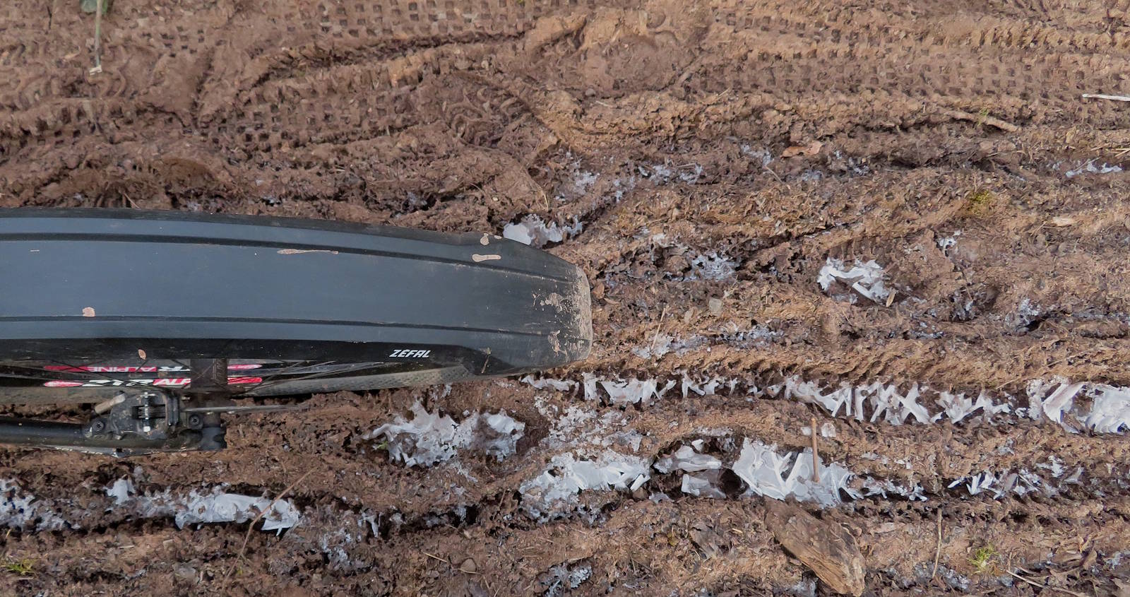 … machen das Befahren der Trails und Wege nicht unbedingt leichter, zumindest verhindern sie, dass das Rad einigermaßen sauber bleibt…