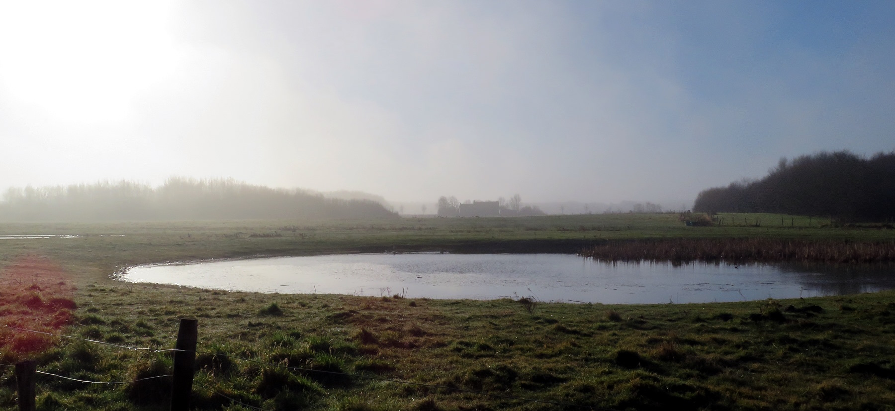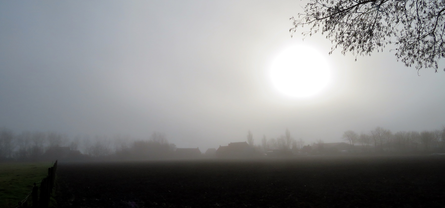Noch liegt er dicht und schwer über dem flachen Land, als ich morgens eine Erkundungsrunde starte…