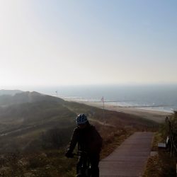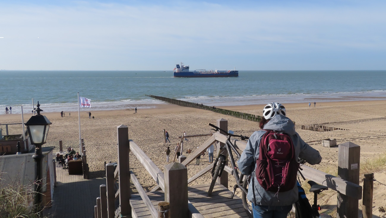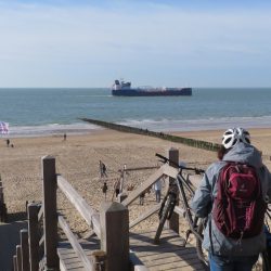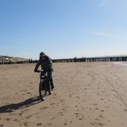 Nachmittags fahren wir diese Route noch einmal gemeinsam – mit kleinen Änderungen. Es geht nämlich ein Stück direkt am Meer entlang, um den vielen Sonntagsspaziergängern aus dem Weg zu gehen – und die Füße einmal mit Meerwasser umspülen zu lassen…