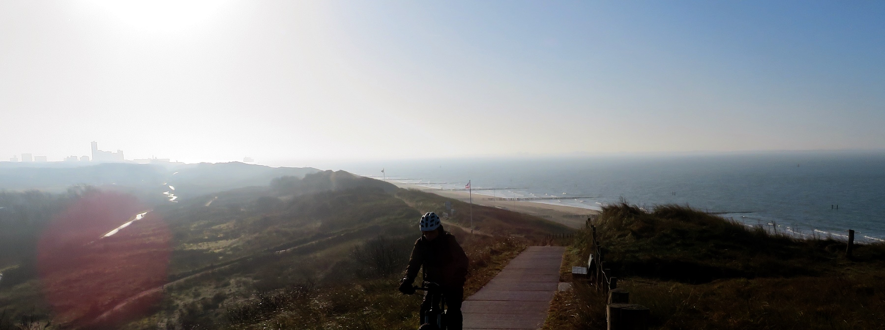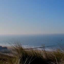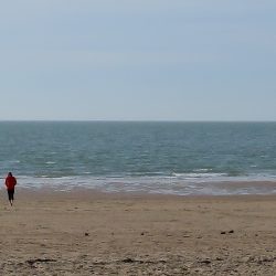 Das soll sich bald ändern, denn inzwischen hat sich die Sonne durchgesetzt und lockt die Sportler aus ihren Betten. Inzwischen bin ich auf den Dünen angekommen und blicke auf das blaue Meer. Jetzt sind überall JoggerInnen unterwegs…