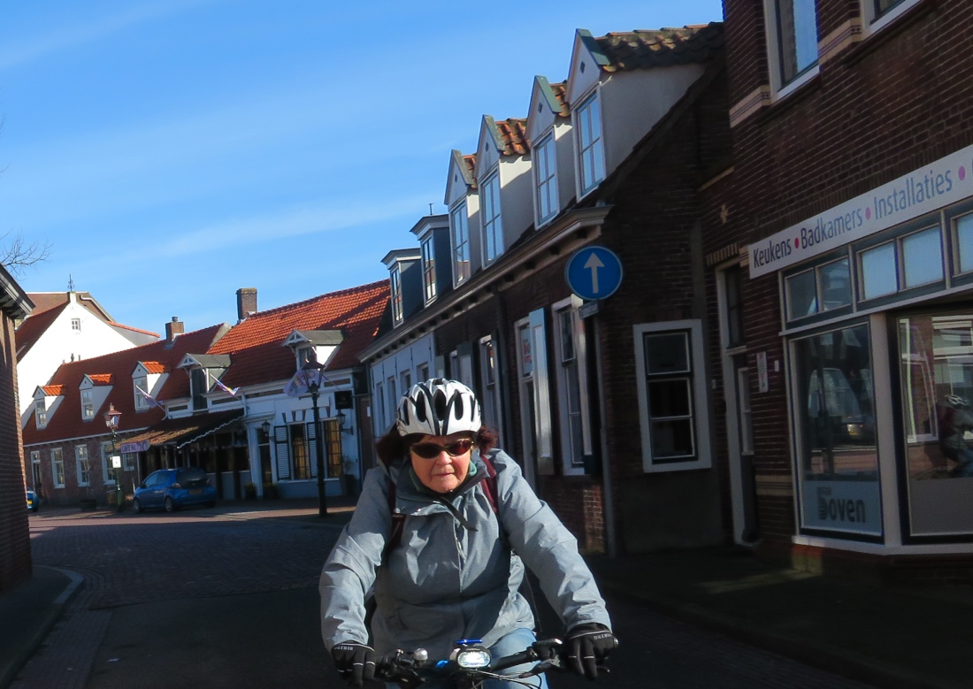 Es geht über einen schönen sandigen Radweg an einem kleinen Kanal vorbei bis in den kleinen Ort Koudekerke. Es ist Gassi-Zeit, aber sonst herrscht auch in Holland Sonntagsruhe…
