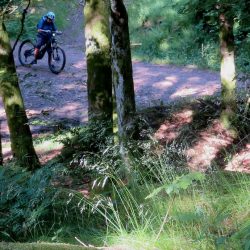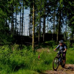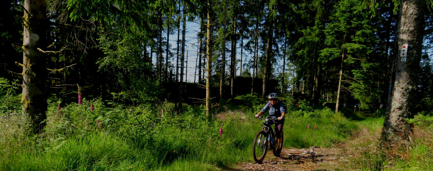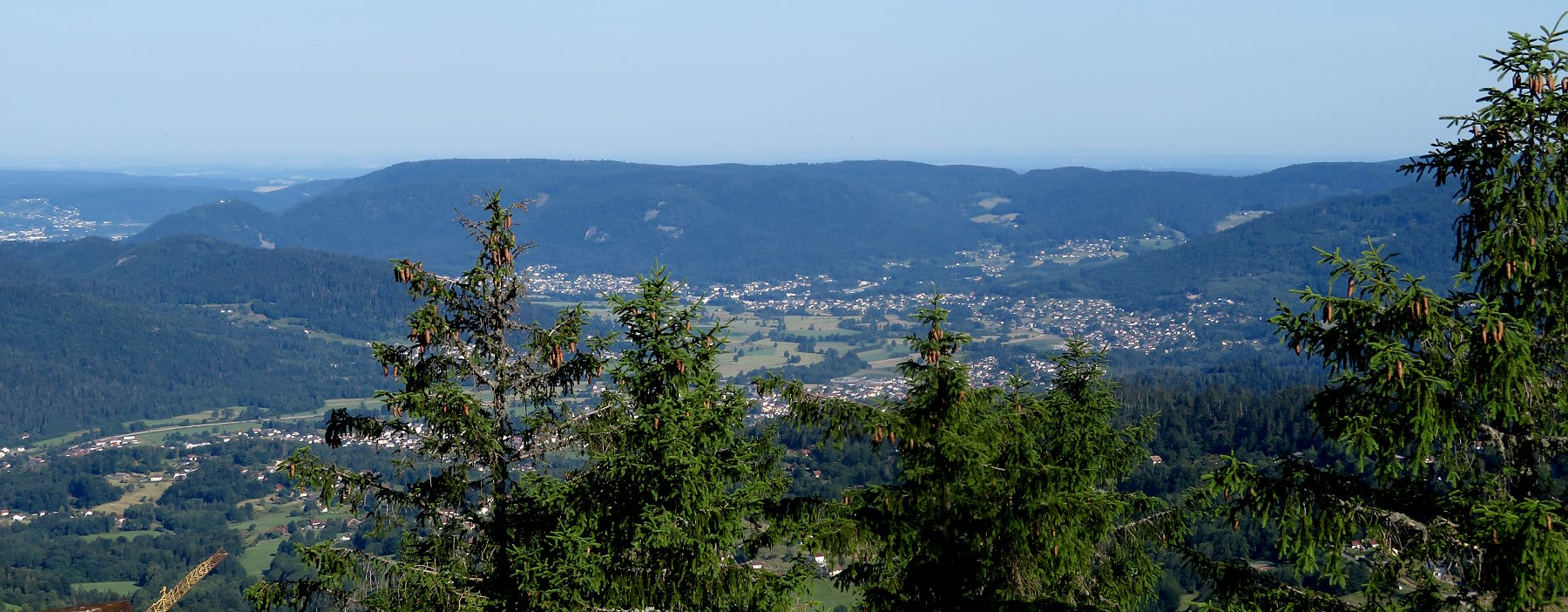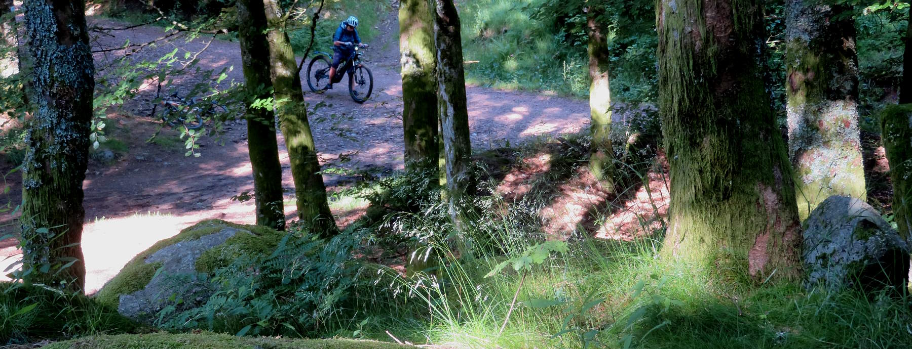 Zuerst geht es aber – bei wieder schönem Wetter – hoch zum Haut du Roc 1012m), den wir am Sonntag zu Fuß wegen eines Gewitters nicht erreicht haben. Mit dem Ebike auch nicht ganz einfach, weil die Wege zum Teil mit dickem, rutschigem Schotter gefüllt sind. Oben hat man eine tolle Weitsicht…