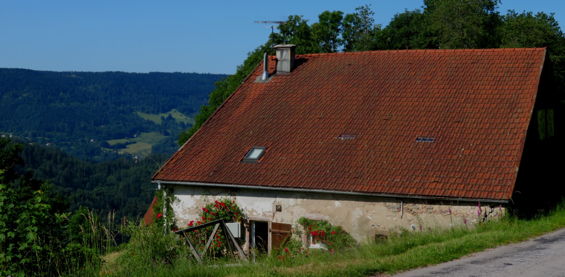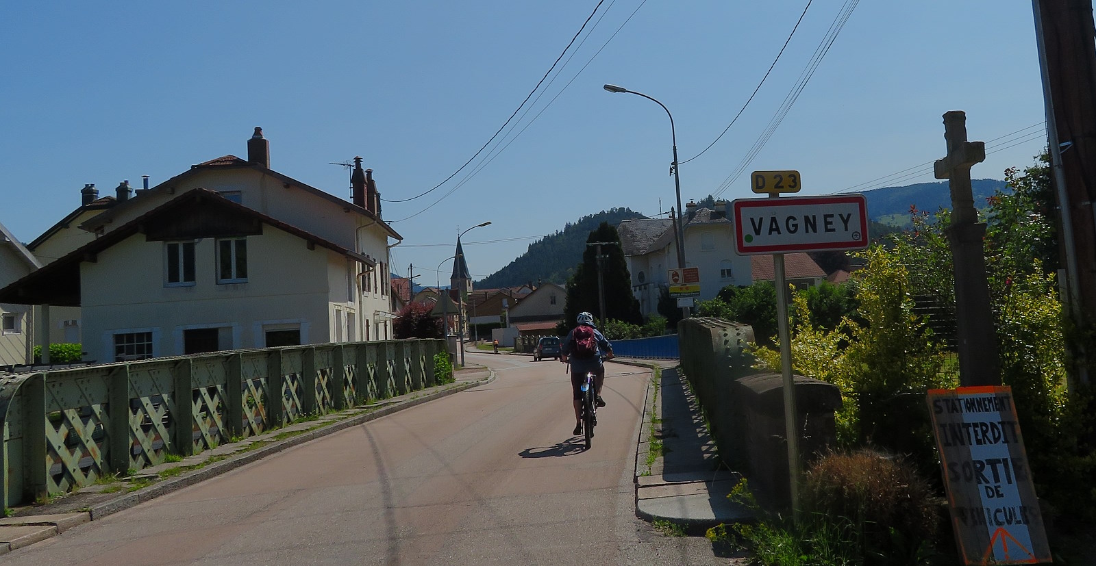 Nachmittags fahren wir noch einmal, aber auf direkterem Weg nach Vagney zum Einkaufen. Es ist brutal heiß, wohl über 30 Grad und viel Verkehr. Aber inzwischen kennen wir die entspannend zu fahrenden Nebenwege…