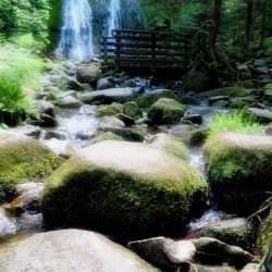 Außer den Wasserfällen lagen auf dem Weg: ein Pestkreuz, ein Aussichtspunkt, eine schöne Gite mit Weiher…
