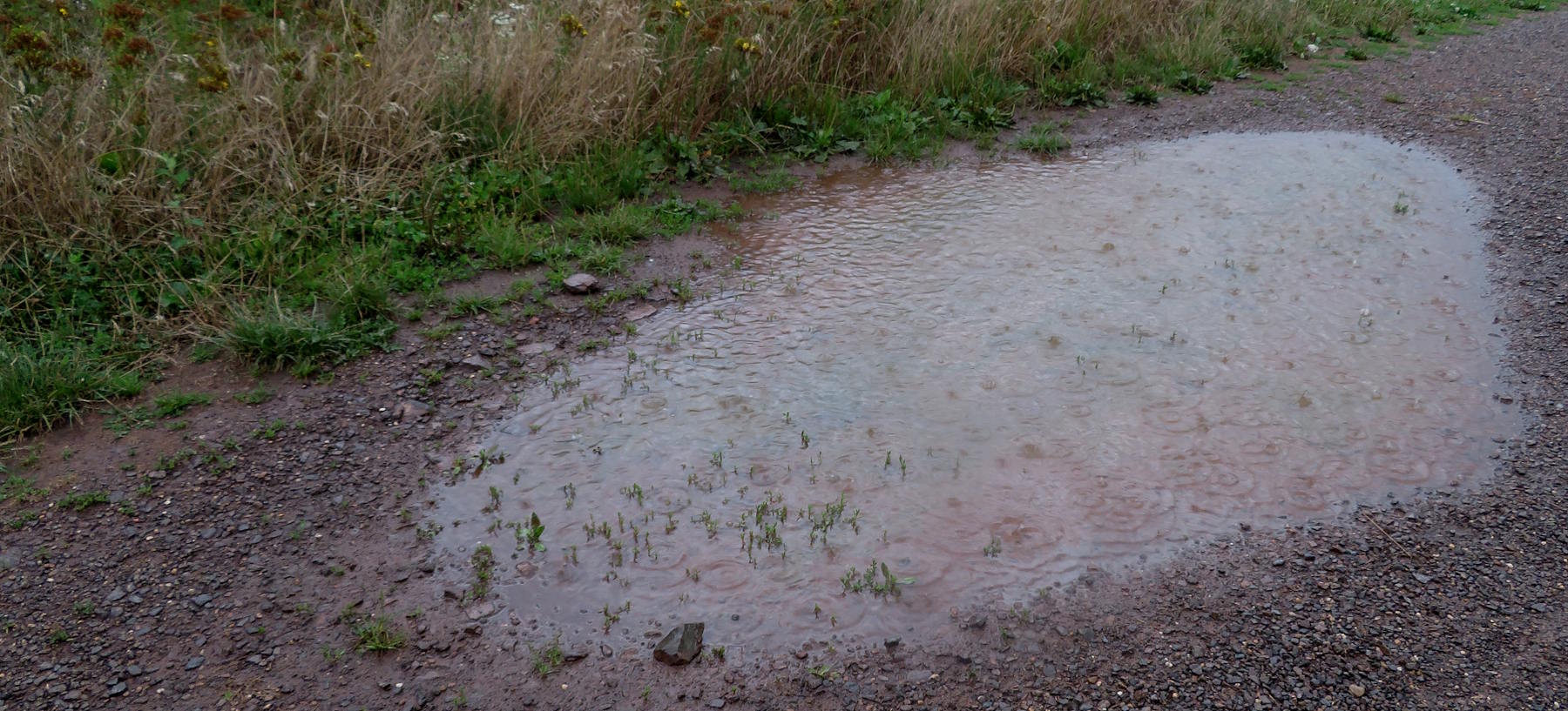 Noch regnet es nicht, aber die Hundegänger rennen schon zu ihren Autos. Ich fahre noch ein Stück in Richtung Lückner, da fängt es an zu prasseln.