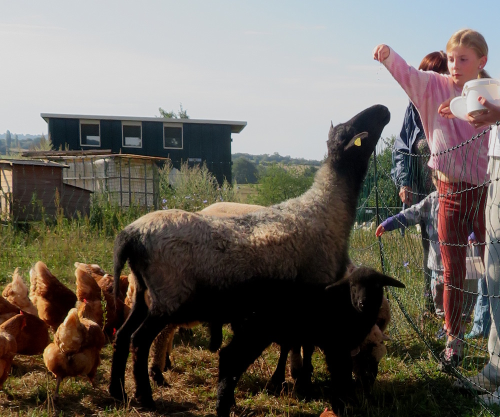 Teil 2 unseres Enkelkinderferienprogramms: Hühner und Schafe füttern auf dem Höchster Hof…