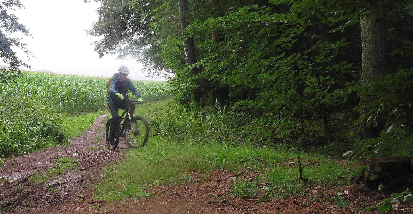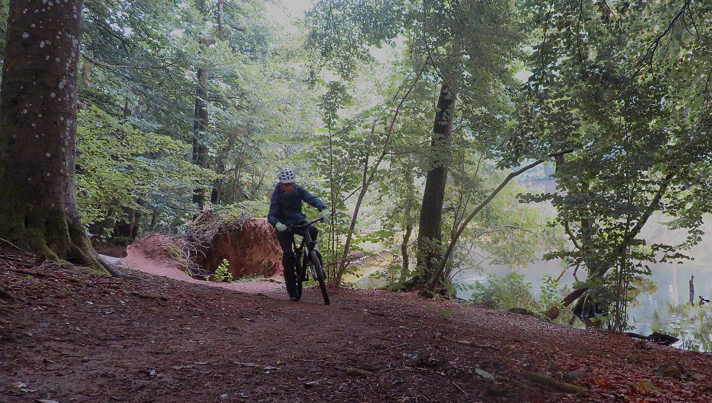 Dort, wo die Bäume dicht stehen, ist es um 9 Uhr noch recht dunkel im Wald – und natürlich auch feucht…