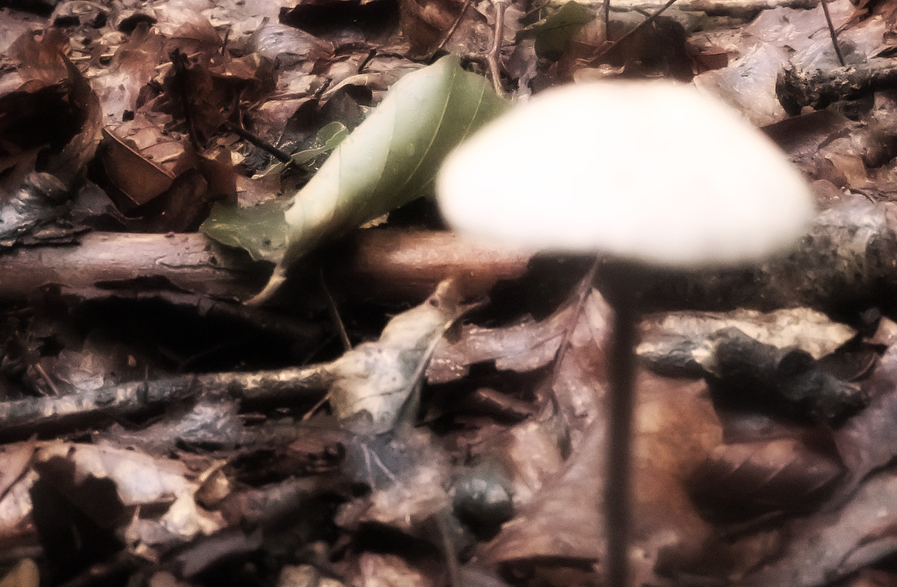 Aber die Luft ist wunderbar frisch und ich genieße auch wieder einmal die Stille im Wald. Und inzwischen sprießen auch die ersten Pilze aus dem Boden. Leider noch nicht genießbares. Nur die Schnecken sind froh damit und knabbern alles an..
