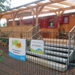 Zuerst geht es durch den Lückner zu Dellborner Mühle und dann nach Wahlen. In der Nähe des Sportplatzes gibt es als „Ableger“ der Wahlener Kita einen Waldkindergartenplatz mit einem tollen Holzwagen… Einen ähnlichen wird Lukas für seinen geplanten Waldkindergarten in Saarbrücken bekommen.