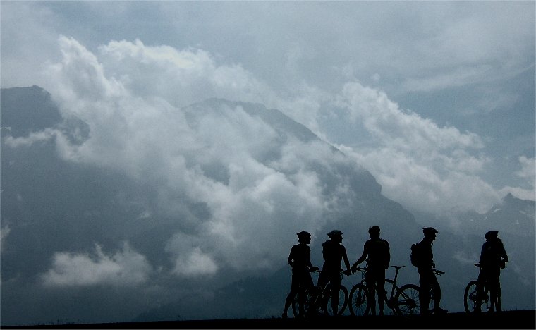 Biker auf der Tschentenalm und Lohner in den Wolken *