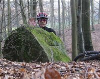 Im Lannenbachtal machen wir ein wenig in Kultur und zeigen den Bikefreaks die tausendjährigen Kultstätten und monumentalen Felsen, die als Opferplätze der Kelten gedient haben sollen. Kurvige Singletrails im Schnee erwarten uns am Teufelsfelsen in Waldhölzbach. Gelegenheit für die beiden "Vereinsfotografen", ihre digitale Munition zu verschießen. Noch mehr Bilder von der eisigen Tour... Tag: Sa, 15.02.03 Strecke: Saarbrücken/St. Arnual, Felsenweg, Spicheren, Forbach Dauer/Länge: 3 Std Fahrer/innen: mit Elisabeth und Uwe - zu Gast bei den Outdoors des Wellnesscenters St. Arnual Auf den Pfaden der Kindheit biken Die Bekanntschaft mit Thomas L. hat es möglich gemacht: Mal dort biken, wo man vor vielen, vielen Jahren die Kindheit verbracht hat - im Raum Saarbrücken, St. Arnual. Elisabeth und Uwe sind auch mit von der Partie. Heimlich überqueren wir dann die Grenze nach Frankreich, gottlob, keiner schießt auf uns... und bald sind wir auf historischem Boden, auf der Spicherer Höhe. Wir rollen über blutgetränkten Boden: hier wütete 1870/71 der Deutsch-Französische Krieg. Auszug es-heftche.de:Wirksame Hülfe nahte aber jetzt von rechts her. General v. Goeben hatte alle noch nicht ins Gefecht verwickelten Bataillone der 16. Division in der entscheidenden Richtung auf Stiering vorgeschickt. Indem ein Teil derselben gegen den Ort Front machte, erstieg der andere von der Chaussee aus die Schluchten des Spicherer Waldes, vertrieb im Handgemenge die Franzosen von dem zum Rothen Berg führenden Sattel und drängte sie mehr und mehr auf den Forbacher Berg zurück. Noch um 7 Uhr war auf dem rechten französischen Flügel die Division Laveaucoupet, unterstützt durch einen Teil der Division Bataille zum Angriff vorgegangen und nochmals in den viel bestrittenen Gifert-Wald eingedrungen. Verluste in der Schlacht bei Spichern: Die deutsche Seite: Tote: 49 Offiziere und 794 Mannschaftsdienstgrade; Verwundete: 174 Offiziere und 3482 Mannschaftsdienstgrade. 372 Mann wurden vermisst, dabei handelte es sich vermutlich um Gefangene. Die französische Seite: Tote: 37 Offiziere und 283 Mannschaftsdienstgrade; Verwundete: 168 Offiziere und 1494 Mannschaftsdienstgrade. 44 Offiziere und 2052 Mann wurden vermisst (davon ca. 600 tot oder verwundet). Bis hierher führte uns Mathias über schön blättrige Singletrails. Leider waren die Wege noch tief gefroren und haben so ihr zum Teil durch Bikes geschaffenes scharfes Profil bewahrt. Da hieß es sich voll konzentrieren. Zwei längere Verschnaufpausen verschafften uns zwei Pannen: ein Kettenriss und ein Bremsendefekt. Auf dem Rückweg wird es arg klebrig. Wir müssen über ein aufgetautes Feld. Der französische graubraune Lehm klebt wie der Teufel, Gras und Strohreste mischen sich noch drunter, das macht Spaß. Zu allem Pech müssen wir dann dieselbe Strecke nochmal zurück fahren, weil der angesteuerte Pfad durch Waldarbeiten unbenutzbar war. Bilder von der Tour, viere sind der Linse von Thomas L. entsprungen. Tag: Fr, 15.02.03 Strecke: Im Lückner Dauer/Länge: 1,5 Std Fahrer/innen: allein Spazierfahrt durch den Lückner. Sogar ein Mountainbiker kam mir von der Kapelle herauf entgegen. Hat aber nicht zurückgegrüßt, nur komisch geguckt?! Zwei neue Wegstücke ausprobiert. Nichts Brauchbares dabei. Ein Stück war zu mit gefällten Bäumen, ein anderes zu steil. Tag: Do, 14.02.03 Strecke: Lebach, Hüttersdorf, Sodixhütte Dauer/Länge: 1,5 Std Fahrer/innen: allein Wintersonnenbad Die Sonne schien so verlockend, dass der Nachhauseweg etwas länger wurde. In Hüttersdorf/Buprich gings den Berg hoch und an der Einfahrt zum Campingplatz "Zum schnellen Hasen" musste schon eine Jacke dran glauben. Zu warm. Der Blick geht rüber nach Außen, das von hier aus wie ein sizilianisches Dörfchen am Berg klebt. Durch den Wald bis zur Sodixhütte wird es schon wieder etwas kühler. Und richtig graust es mich, als ich sehe, dass einer der schönsten Singletrails hier in der Ecke immer noch fast unfahrbar ist. Jetzt, bei Minusgraden, geht es gerade noch so. Bei Waldarbeiten ist bestimmt ein Drittel des Weges im Matsch verschwunden. Das ist für Biker und Wanderer schon eine Zumutung. Tag: Mi, 12.02.03 Strecke: Lebach