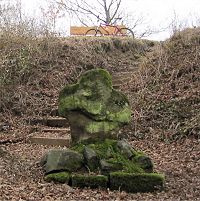 In der bald folgenden Tourenbeschreibung gibt es dann mehr zur Geschichte des Kreuzes zu lesen. Aber wie sieht jetzt der Rückweg aus? Kartenstudium. Vor oder hinter der Autobahn her? Der Weg hinter der Autobahn erweist sich als ätzend: landschaftlich nicht sehr schön, ständiger Verkehrslärm. Es geht immer oberhalb der Autobahn entlang bis zur ersten Brücke oberhalb von Aschbach-Schellenbach. Das gefällt mir schon besser - und ich fahre auf dieser Seite den Weg zum Kreuz wieder zurück. Bald kommt ein Waldstück mit einer schönen Abfahrt - und schon stehe ich ein zweites Mal vor dem moosigen Stein. Jetzt kann ich auch noch nach dem richtigen Hinweg suchen - auf dem Rückweg. Hinter der Autobahnmeisterei führt ein Feldweg den Berg hoch in Richtung Steinbach. Das gefällt mir: nach rechts geht der Blick zum Schaumberg, links liegt das Dörfchen Steinbach. Raus komme ich auf einem bekannten Wegstück, der Route zum Schaumberg. Durch Steinbach durch, dann steige ich wieder nach Höchsten hoch. An dieser Ecke muss auch noch ein bisschen gefeilt werden, dann könnte das eine neue Mysterytour werden... Tag: Mi, 26.02.03 Strecke: Lücknertrails Dauer/Länge: 1,5 Std Fahrer/innen: allein