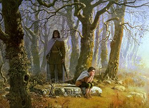 ![]() (Die Bilder stammen von amerikanischen Künstlern wie Alan Lee, Ted Nasmith und den Hildebrandt Brüdern - www.nigthrunner.com) |