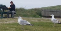Bevor wir im Haus sind, machen wir schon eine kleine Tour, denn die Schlüssel zum Haus müssen wir in Domburg, dem nächst größeren Ort, abholen. Domburg ist uns noch in schlechter Erinnerung: ein Ort voller Touris, Restaurants und Kleidergeschäfte. Wir fahren von Westkapelle am Meer entlang bis D., das gefällt uns ganz gut…